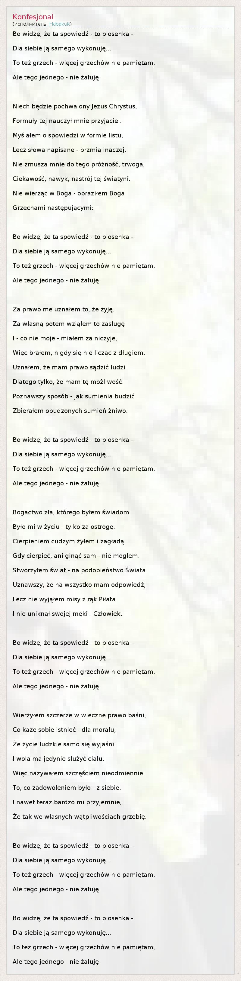 А как ты думаешь, о чем песня "Konfesjonał" ?