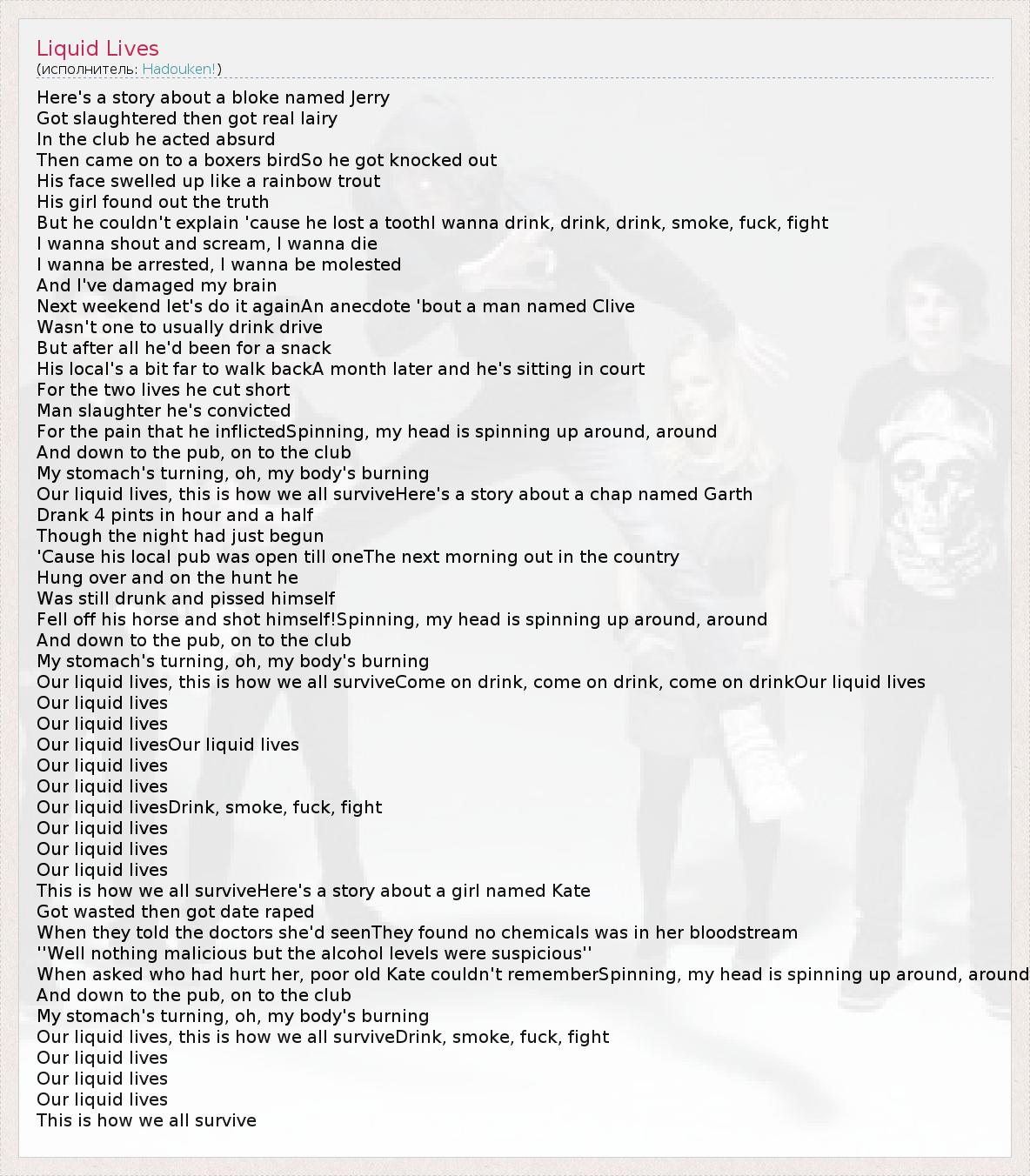 А как ты думаешь, о чем песня "Liquid Lives" ?