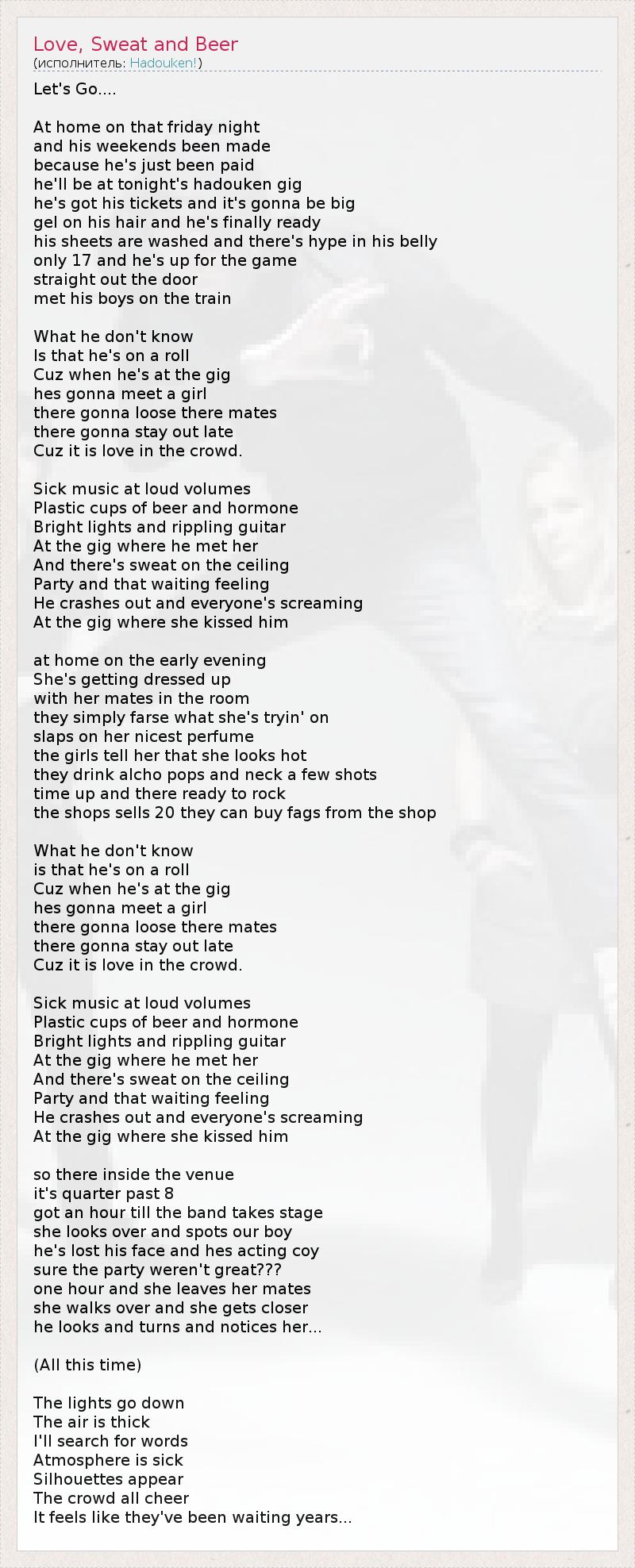 А как ты думаешь, о чем песня "Love, Sweat and Beer" ?