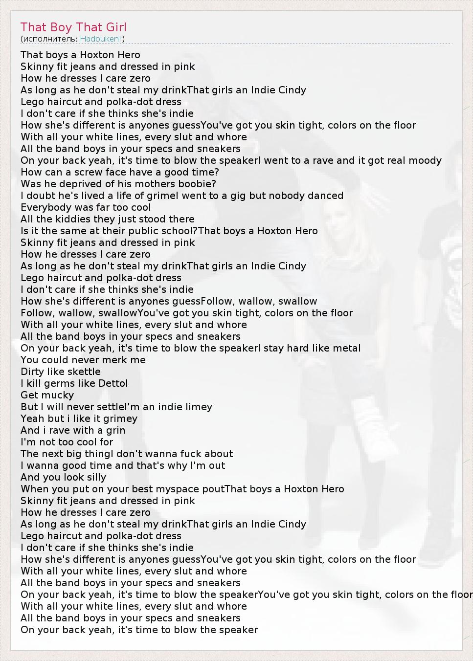 А как ты думаешь, о чем песня "That Boy That Girl" ?