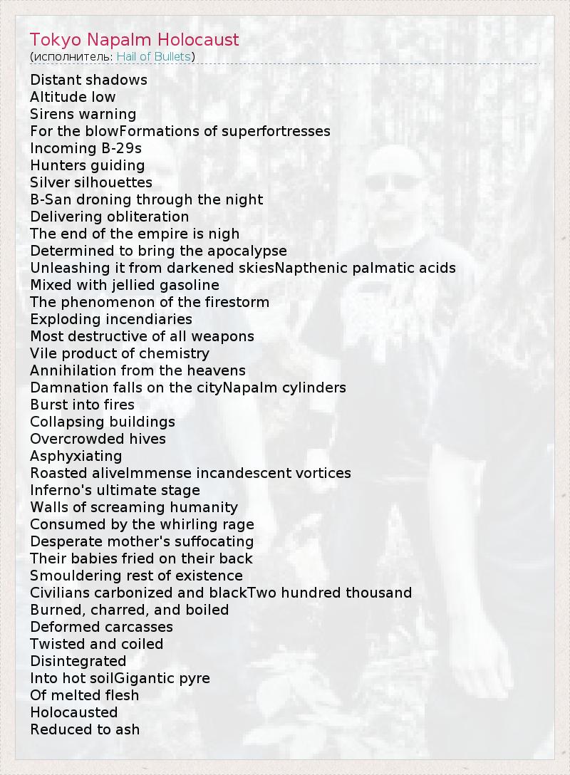 А как ты думаешь, о чем песня "Tokyo Napalm Holocaust" ?