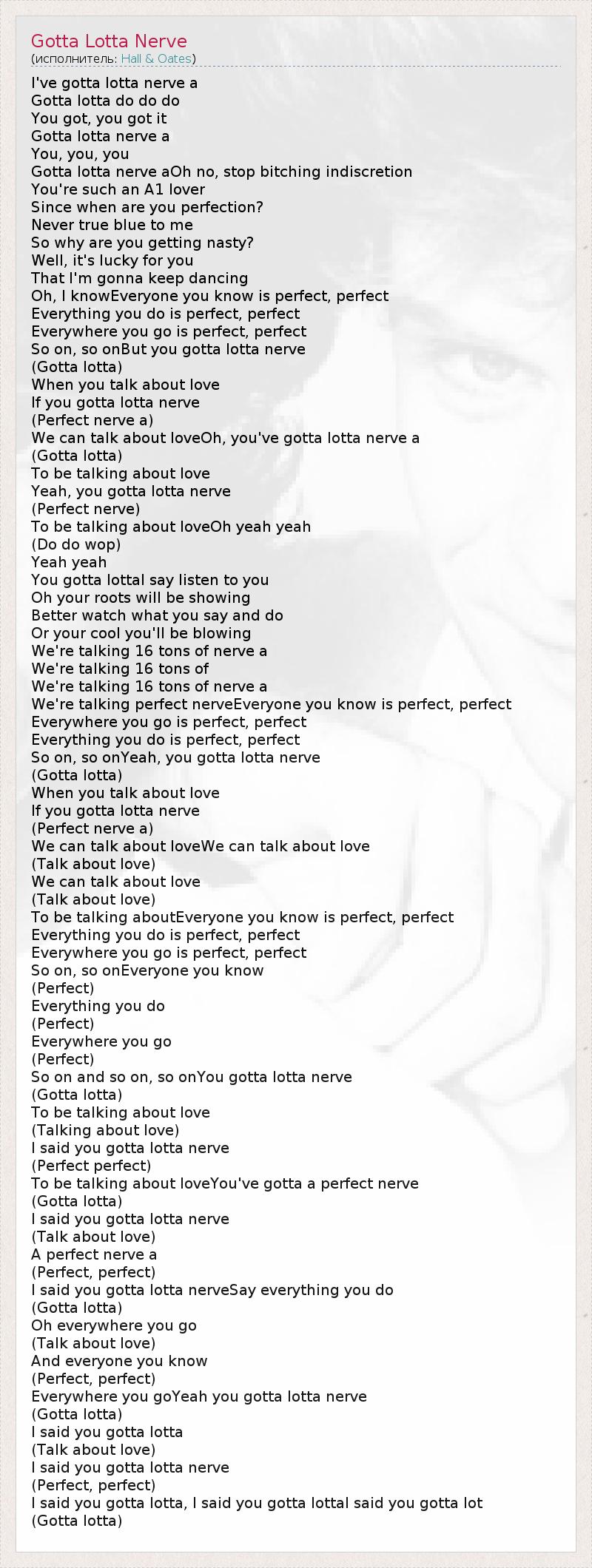 А как ты думаешь, о чем песня "Gotta Lotta Nerve" ?
