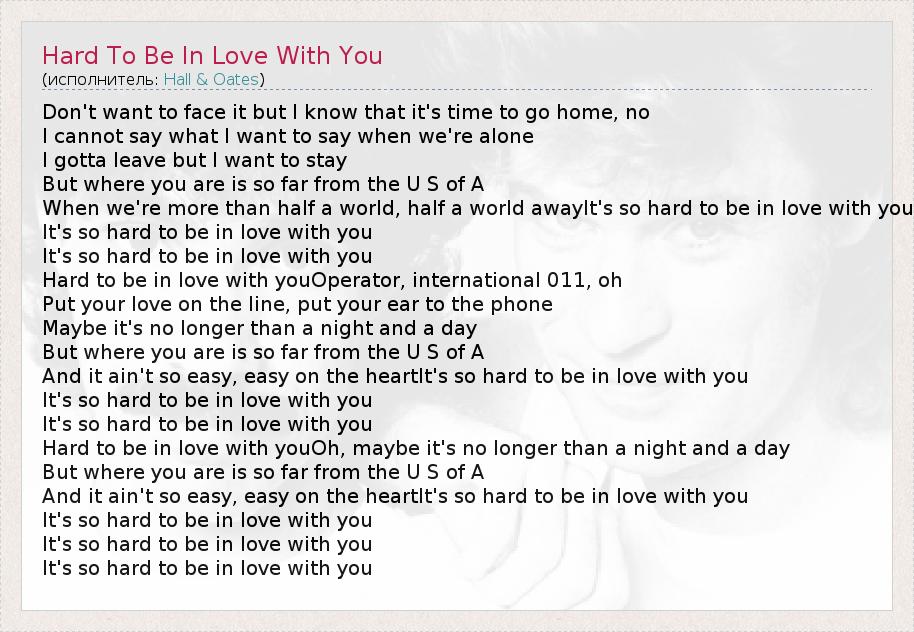 А как ты думаешь, о чем песня "Hard To Be In Love With You" ?