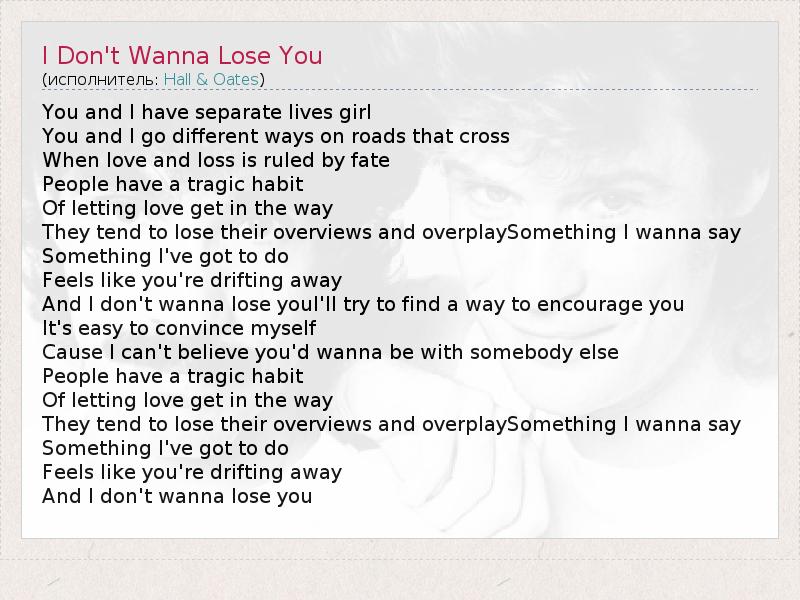 А как ты думаешь, о чем песня "I Don't Wanna Lose You" ?