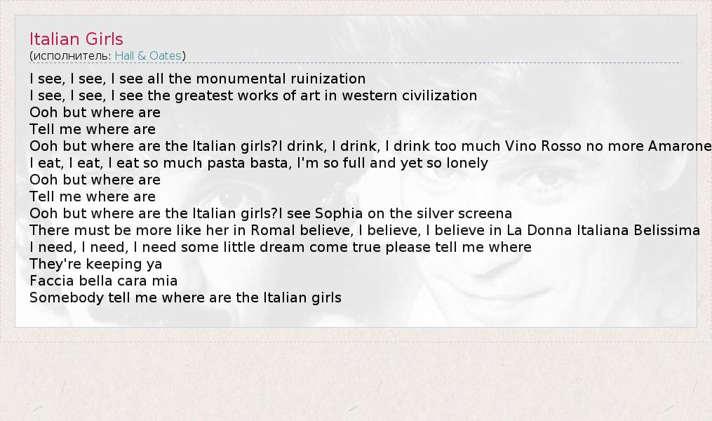 А как ты думаешь, о чем песня "Italian Girls" ?