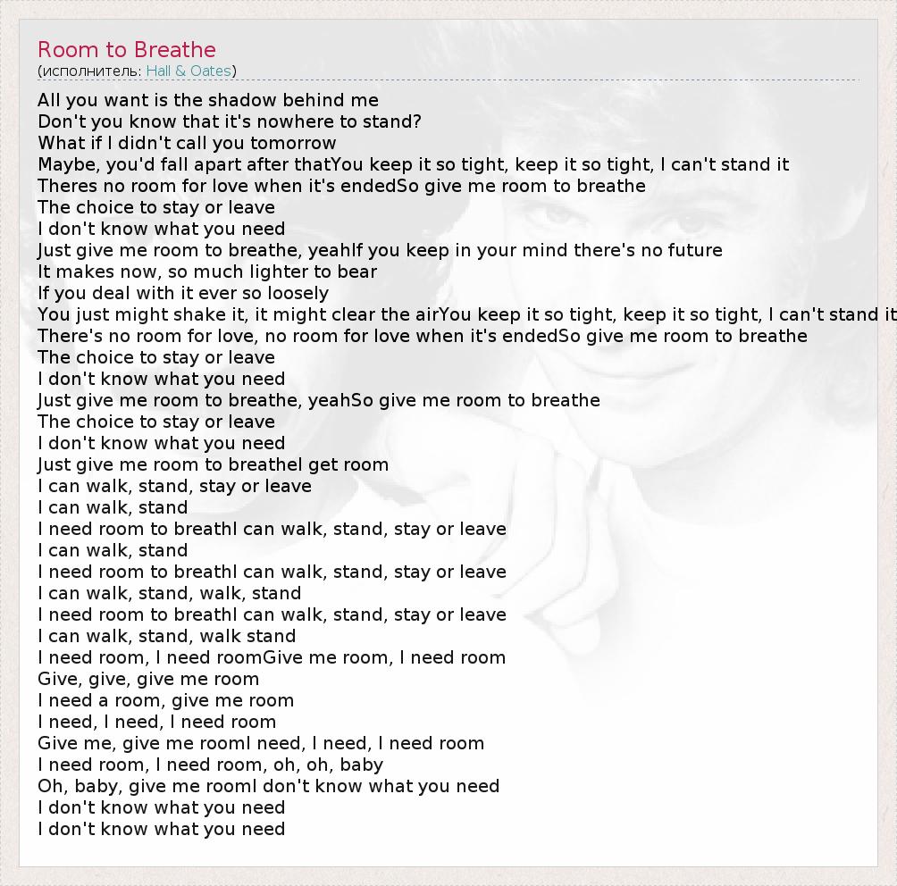 There's no room for love, no room for love when it's endedSo give me room to breathe