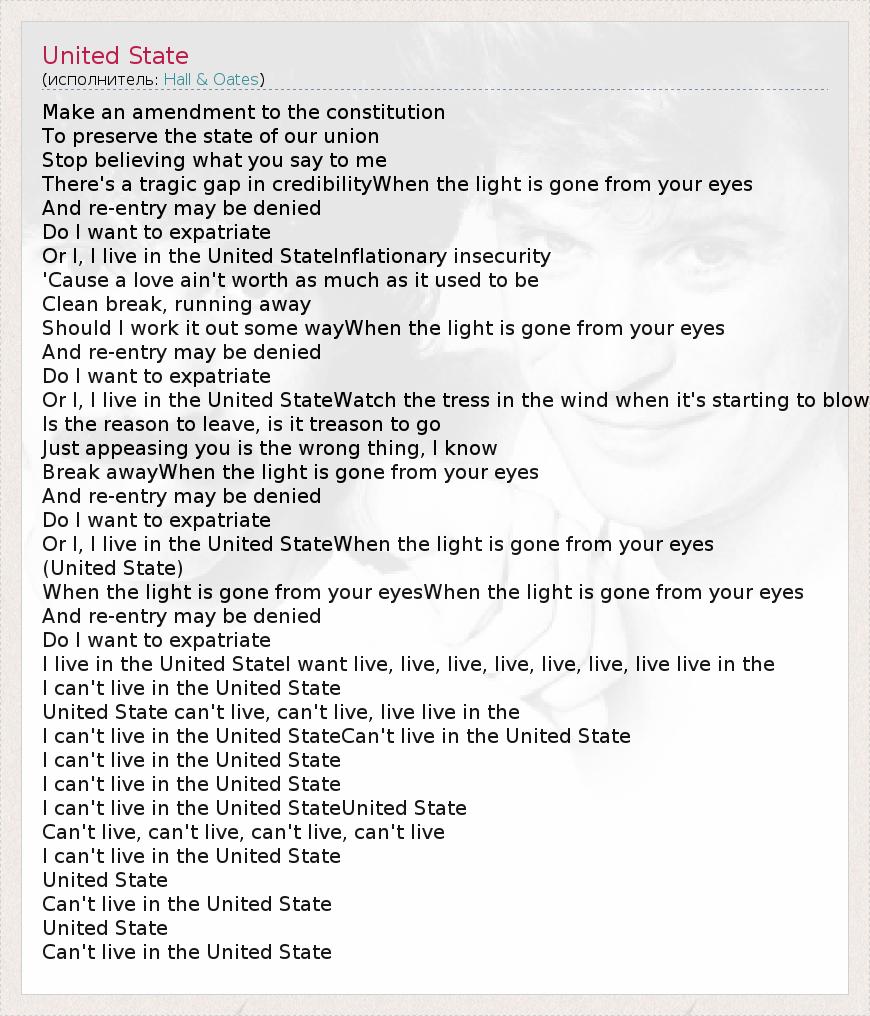 Or I, I live in the United StateWhen the light is gone from your eyes