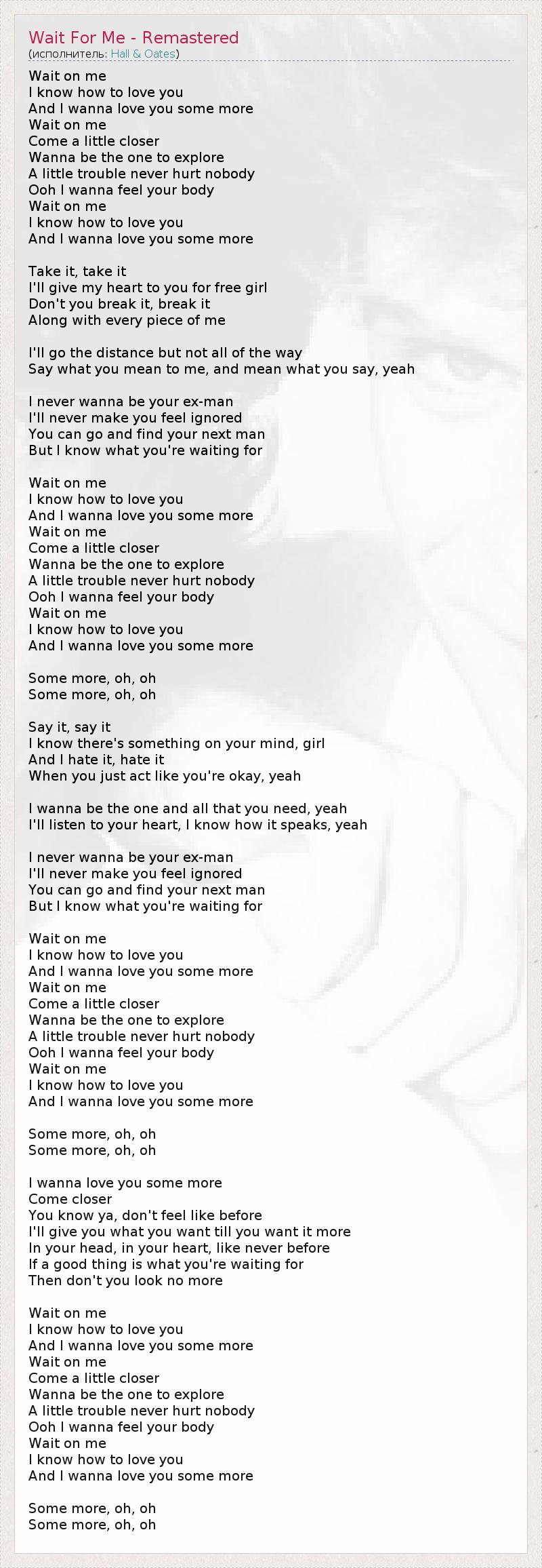 А как ты думаешь, о чем песня "Wait For Me - Remastered" ?