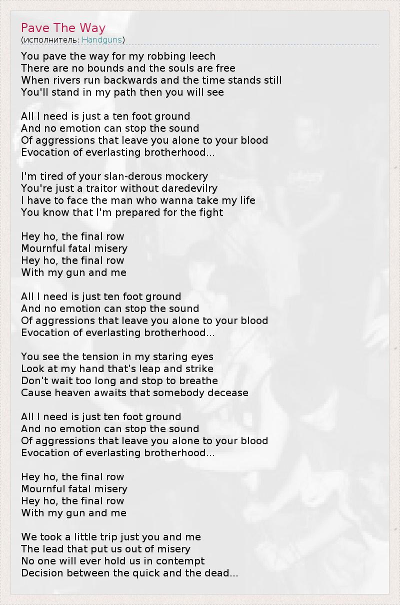 А как ты думаешь, о чем песня "Pave The Way" ?