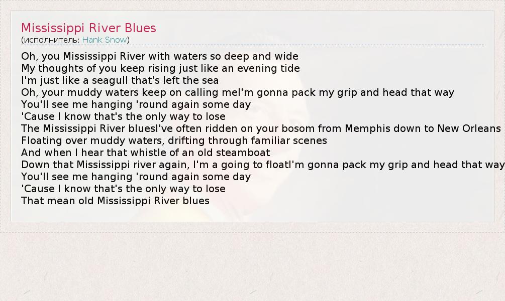 А как ты думаешь, о чем песня "Mississippi River Blues" ?