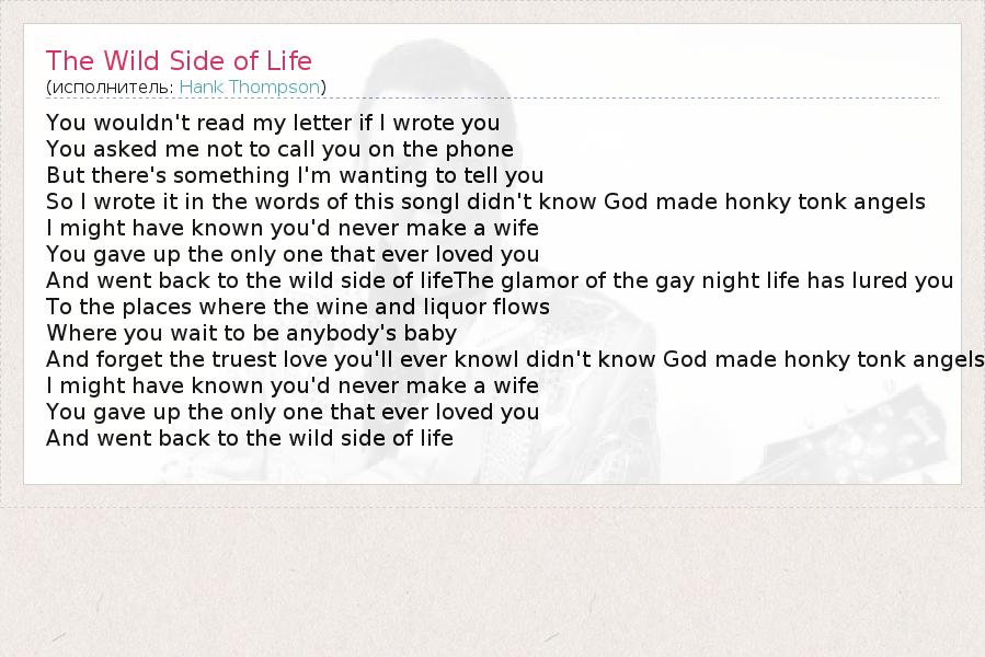 А как ты думаешь, о чем песня "The Wild Side of Life" ?