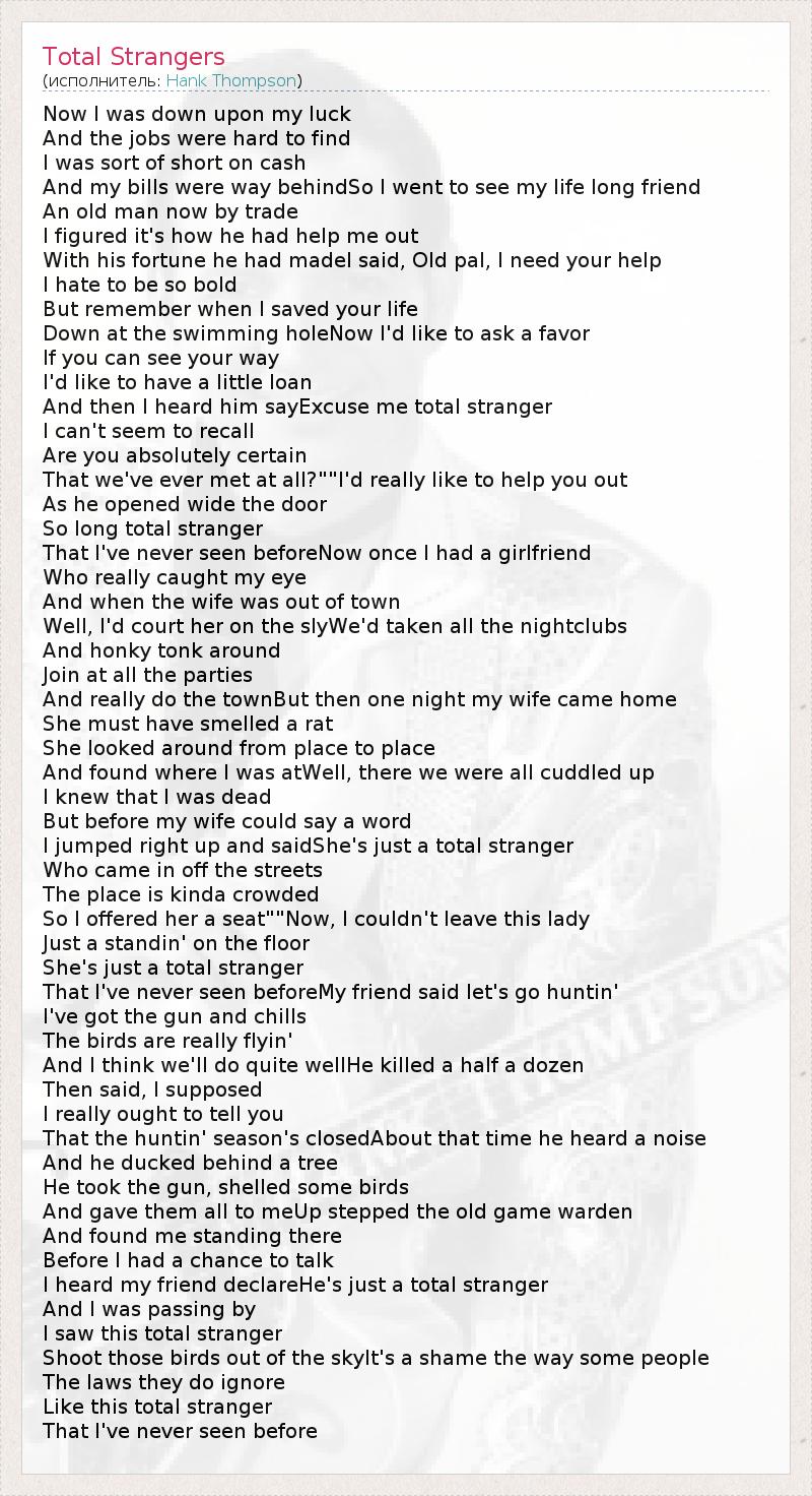 А как ты думаешь, о чем песня "Total Strangers" ?