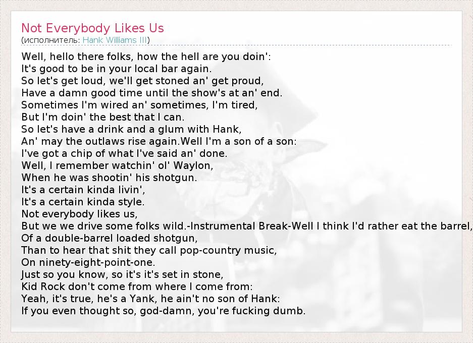 А как ты думаешь, о чем песня "Not Everybody Likes Us" ?