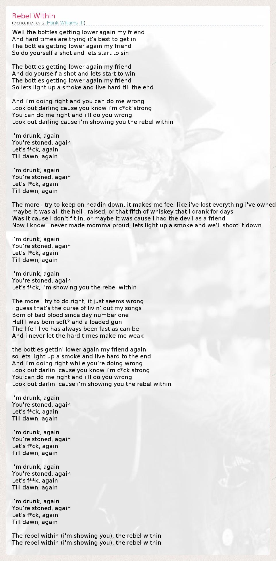 Look out darlin' cause i'm showing you the rebel within