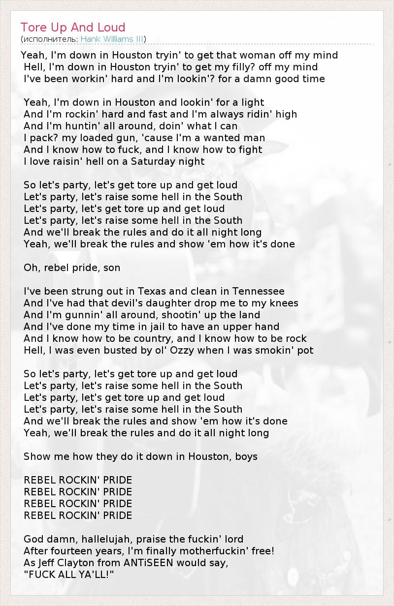 А как ты думаешь, о чем песня "Tore Up And Loud" ?
