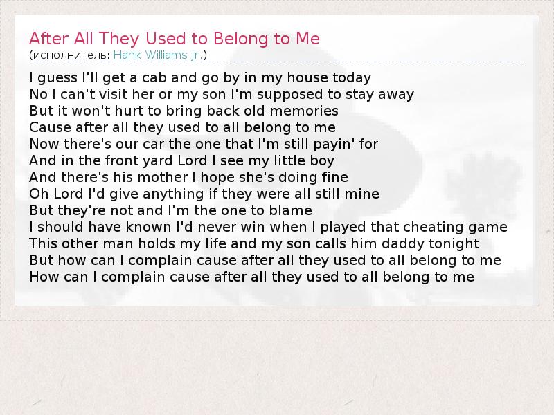 А как ты думаешь, о чем песня "After All They Used to Belong to Me" ?