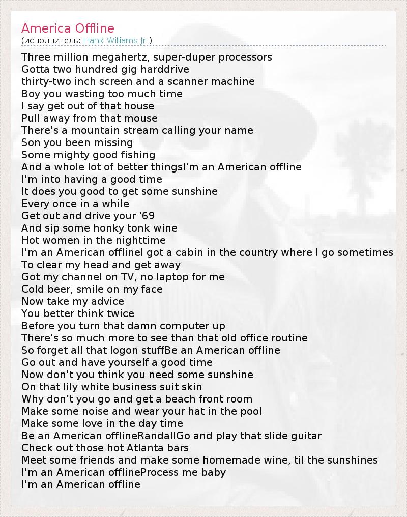 I'm an American offlineI got a cabin in the country where I go sometimes