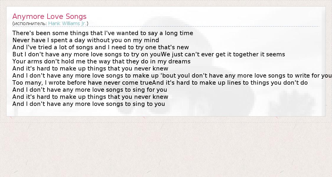А как ты думаешь, о чем песня "Anymore Love Songs" ?