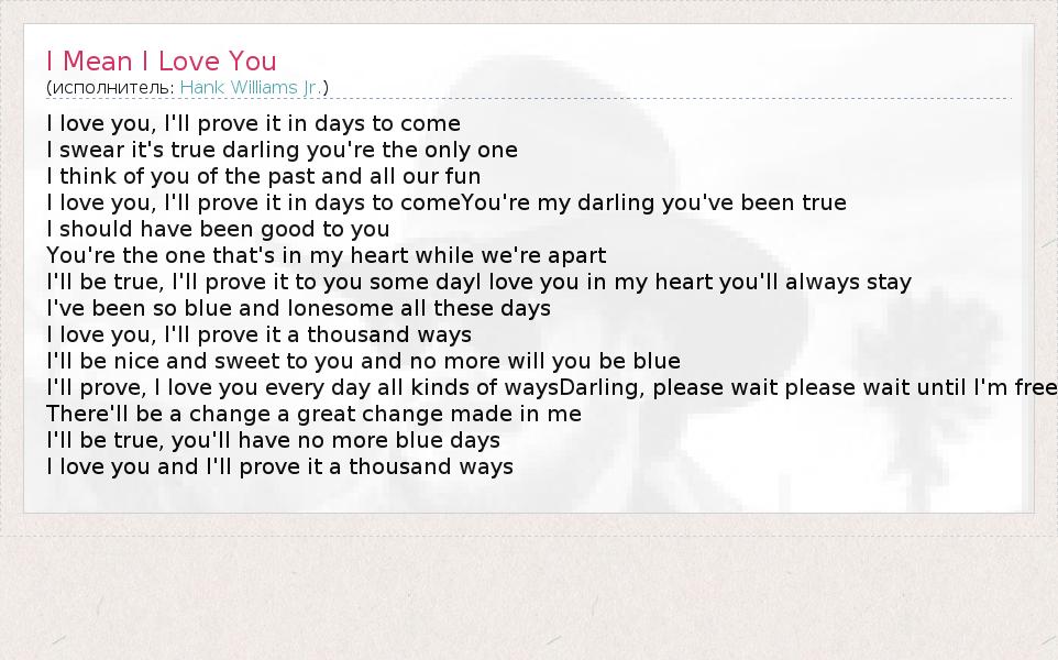 А как ты думаешь, о чем песня "I Mean I Love You" ?