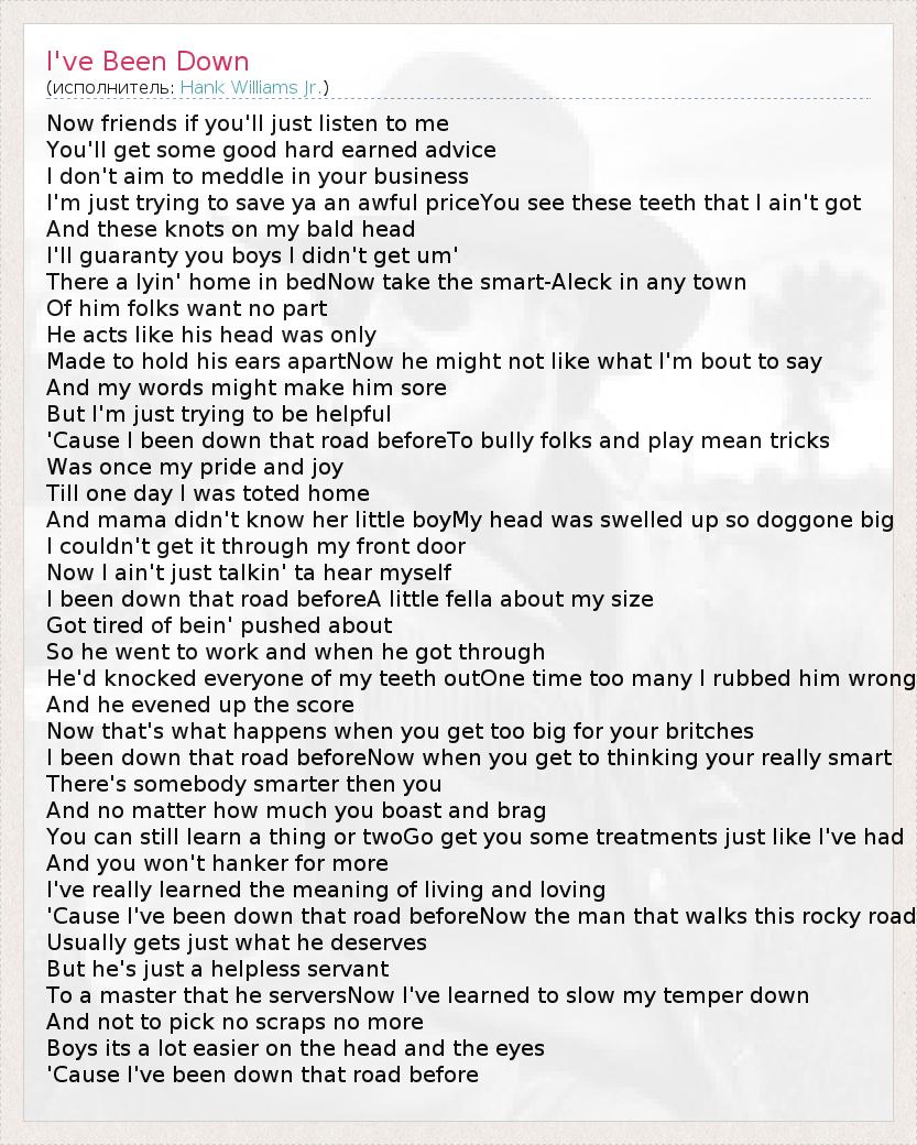 А как ты думаешь, о чем песня "I've Been Down" ?