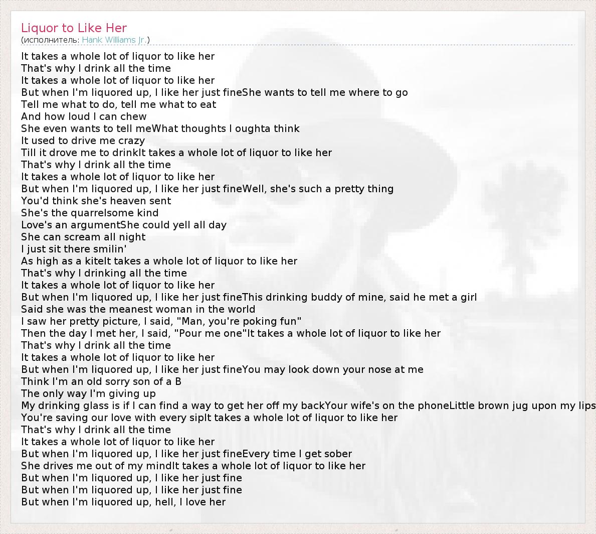 А как ты думаешь, о чем песня "Liquor to Like Her" ?