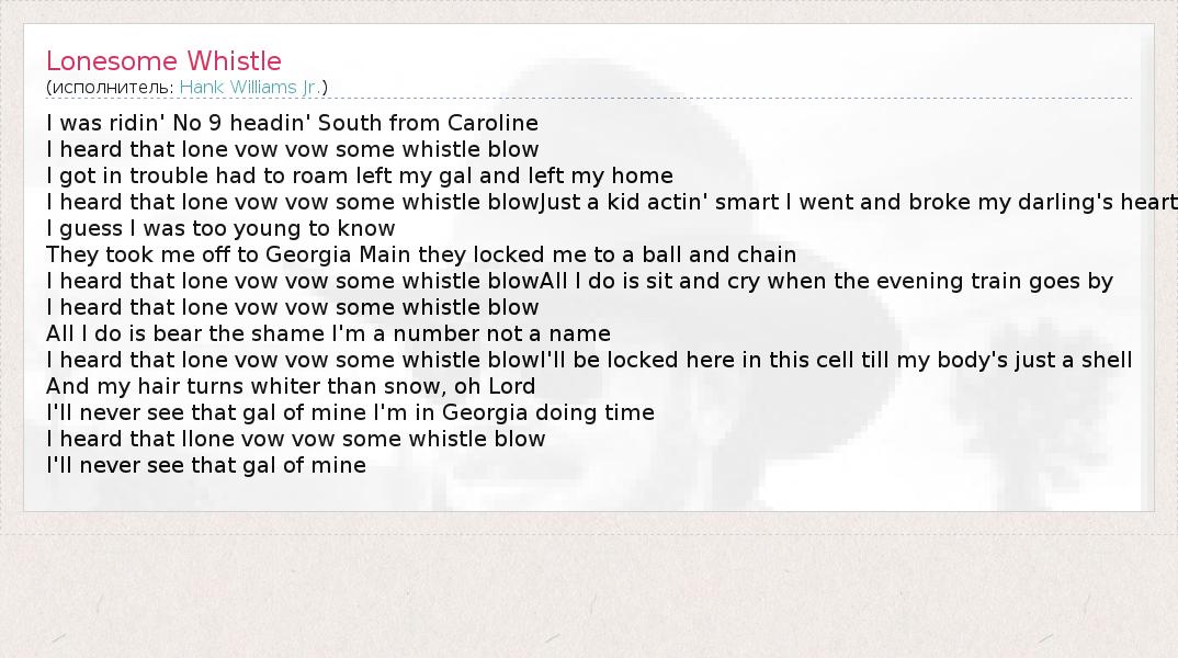 А как ты думаешь, о чем песня "Lonesome Whistle" ?