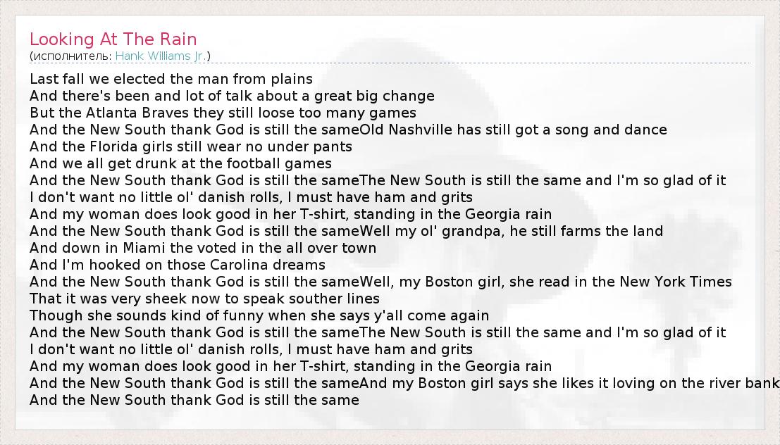 А как ты думаешь, о чем песня "Looking At The Rain" ?