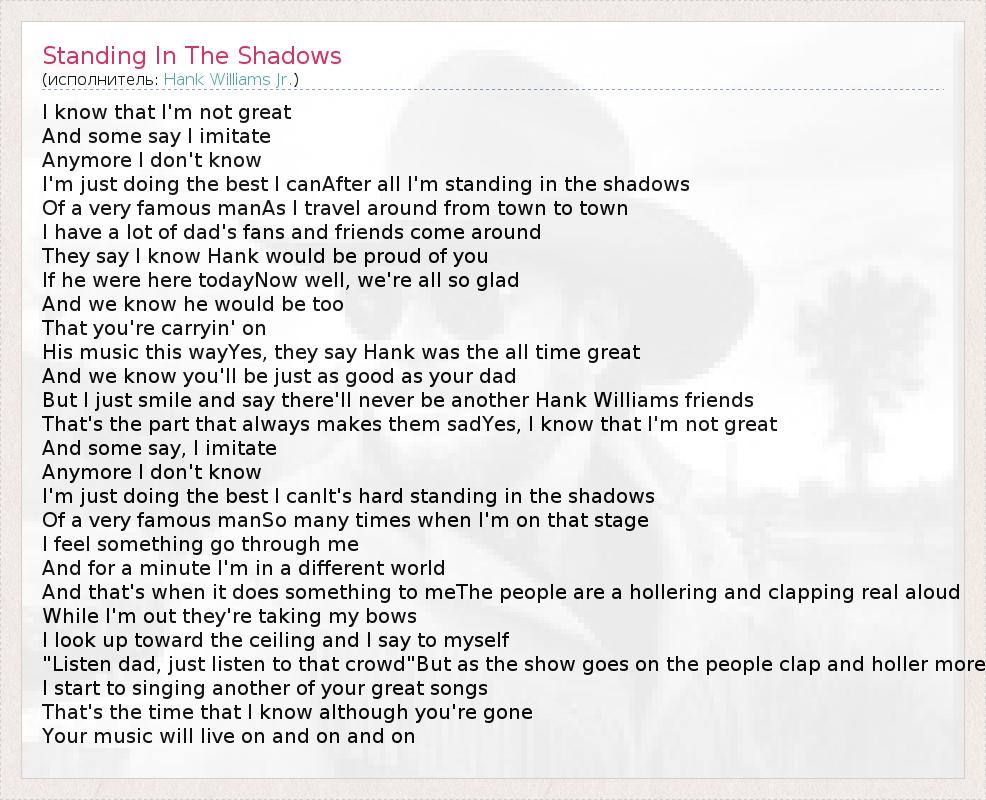 А как ты думаешь, о чем песня "Standing In The Shadows" ?