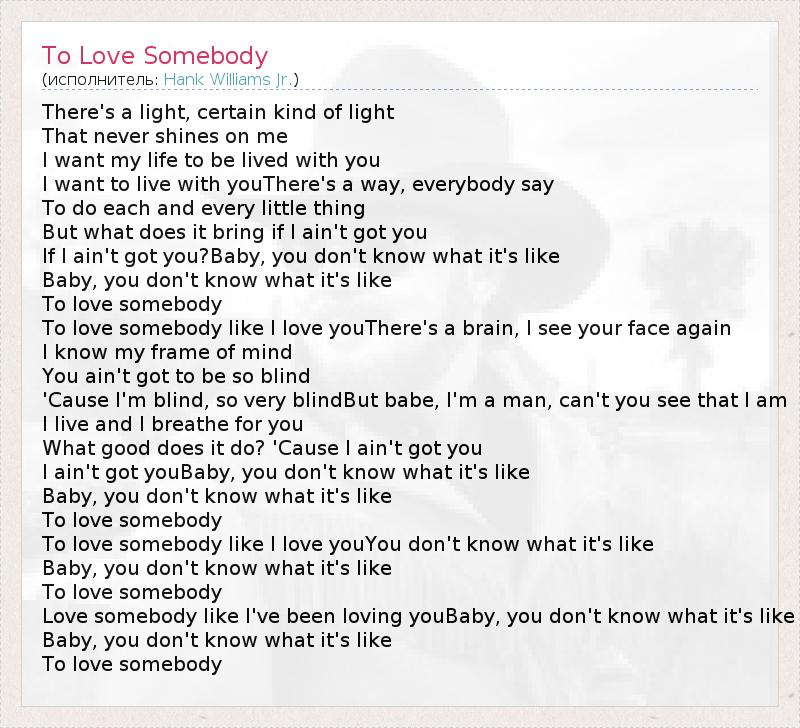 To Love Somebody