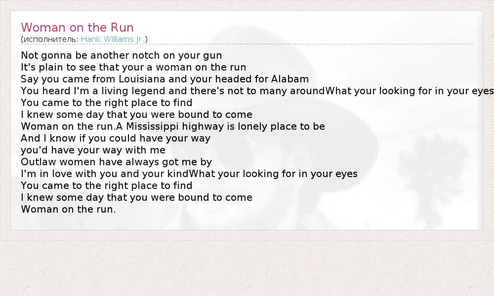 А как ты думаешь, о чем песня "Woman on the Run" ?