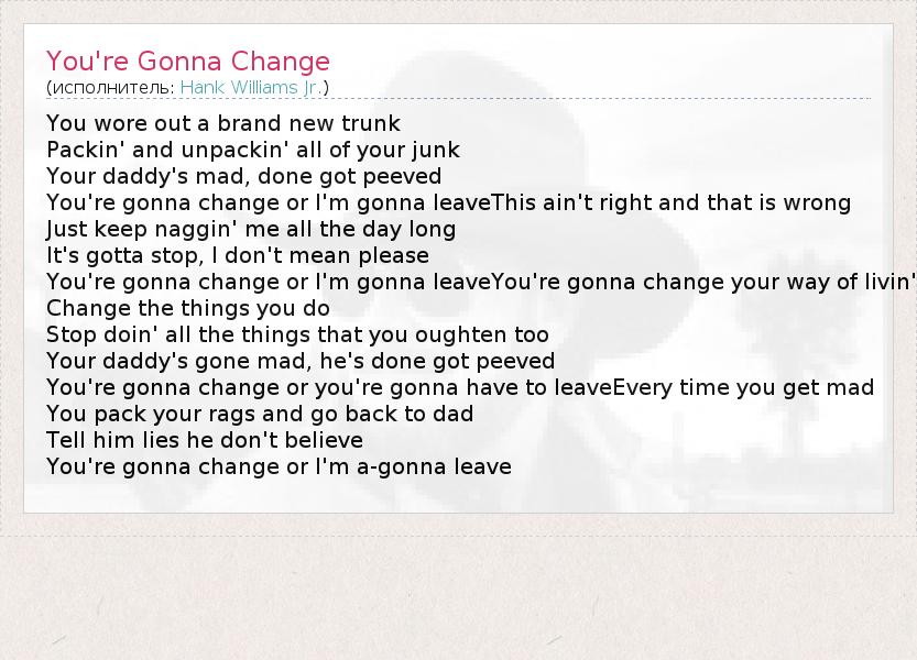 А как ты думаешь, о чем песня "You're Gonna Change" ?