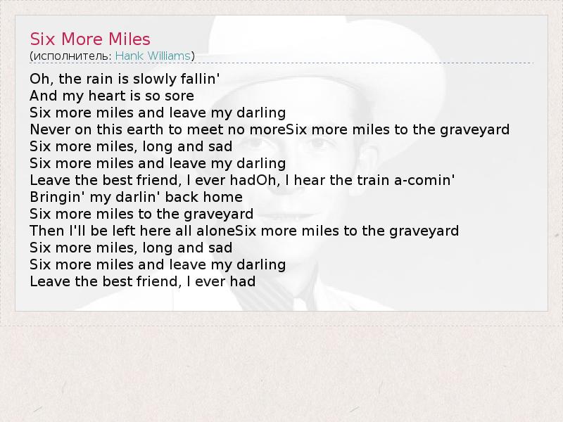 А как ты думаешь, о чем песня "Six More Miles" ?