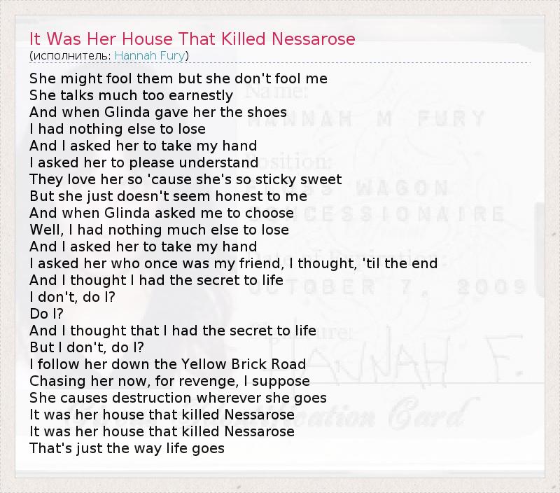 ГлавнаяИсполнителиHannah FuryIt Was Her House That Killed Nessarose