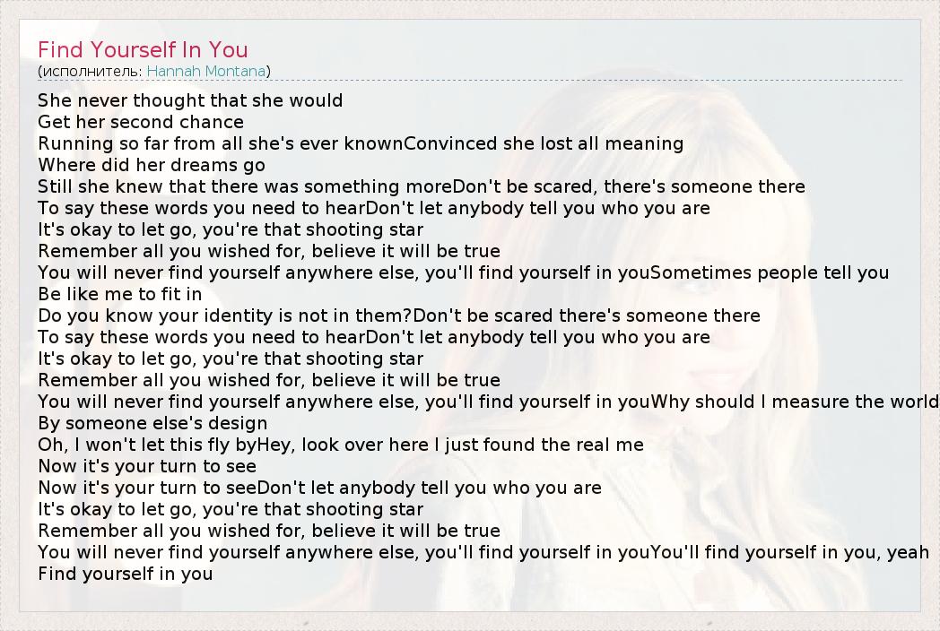 А как ты думаешь, о чем песня "Find Yourself In You" ?