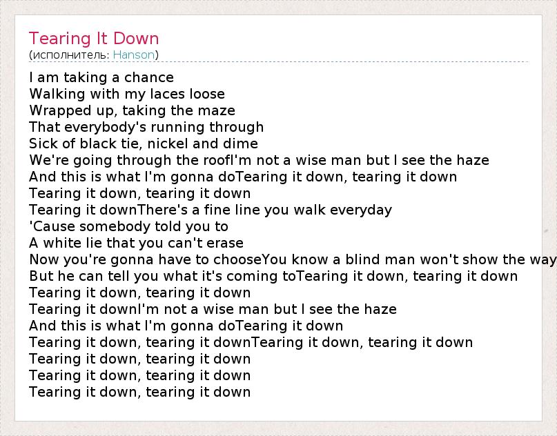 А как ты думаешь, о чем песня "Tearing It Down" ?