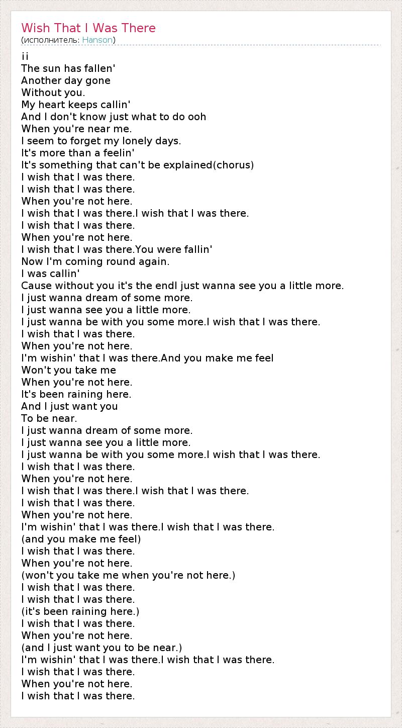 А как ты думаешь, о чем песня "Wish That I Was There" ?