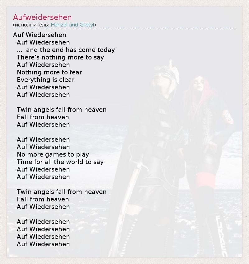 А как ты думаешь, о чем песня "Aufweidersehen" ?