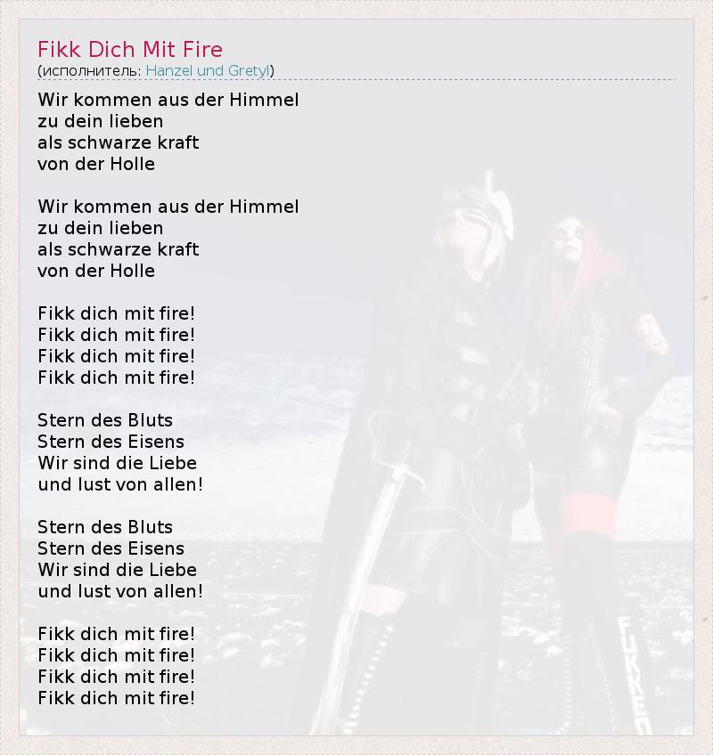 А как ты думаешь, о чем песня "Fikk Dich Mit Fire" ?