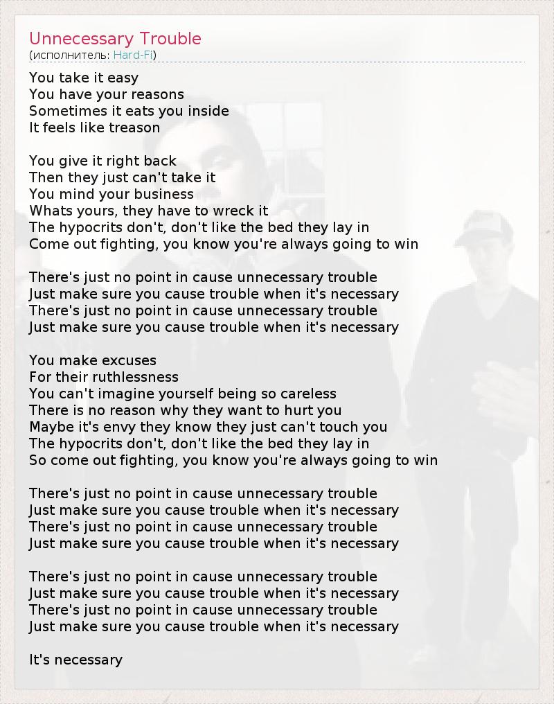 А как ты думаешь, о чем песня "Unnecessary Trouble" ?