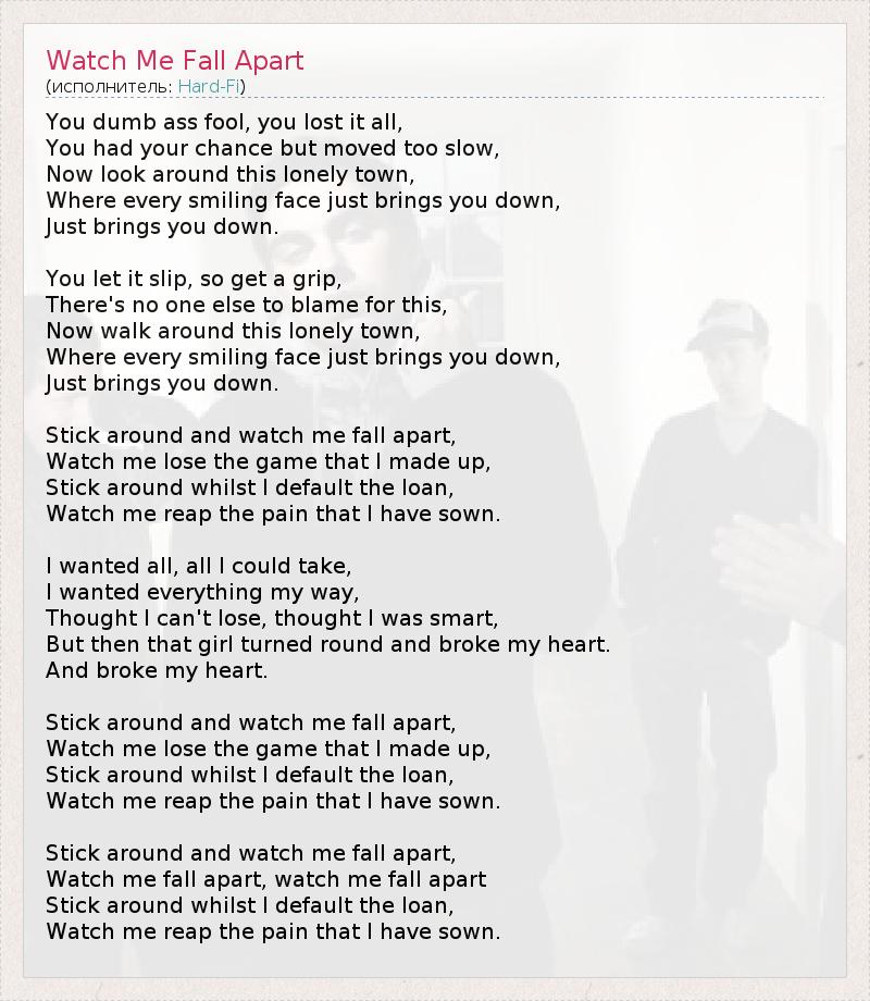 А как ты думаешь, о чем песня "Watch Me Fall Apart" ?