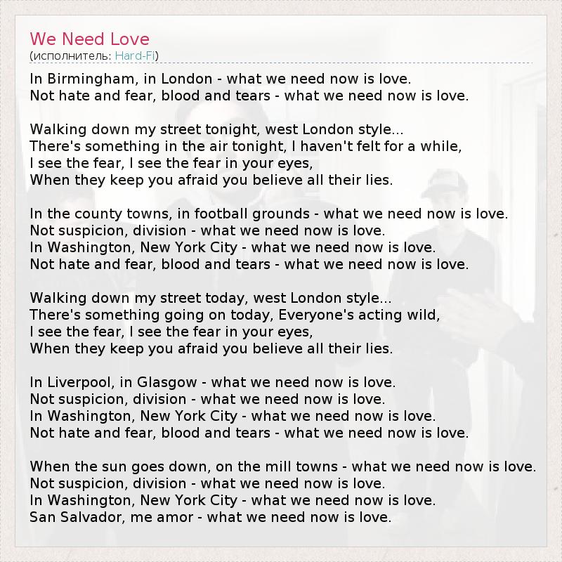 В Бирмингеме, Лондоне – сейчас нам нужна любовь.