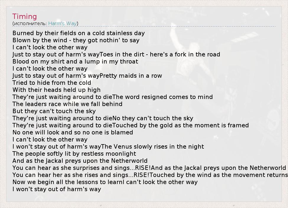 А как ты думаешь, о чем песня "Timing" ?
