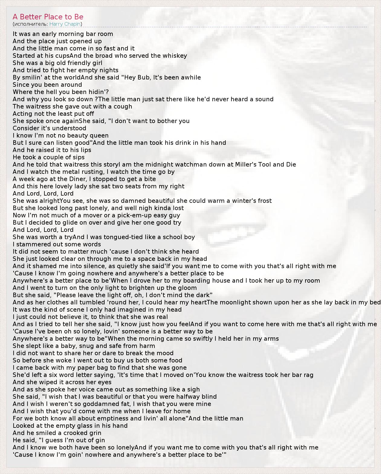 А как ты думаешь, о чем песня "A Better Place to Be" ?