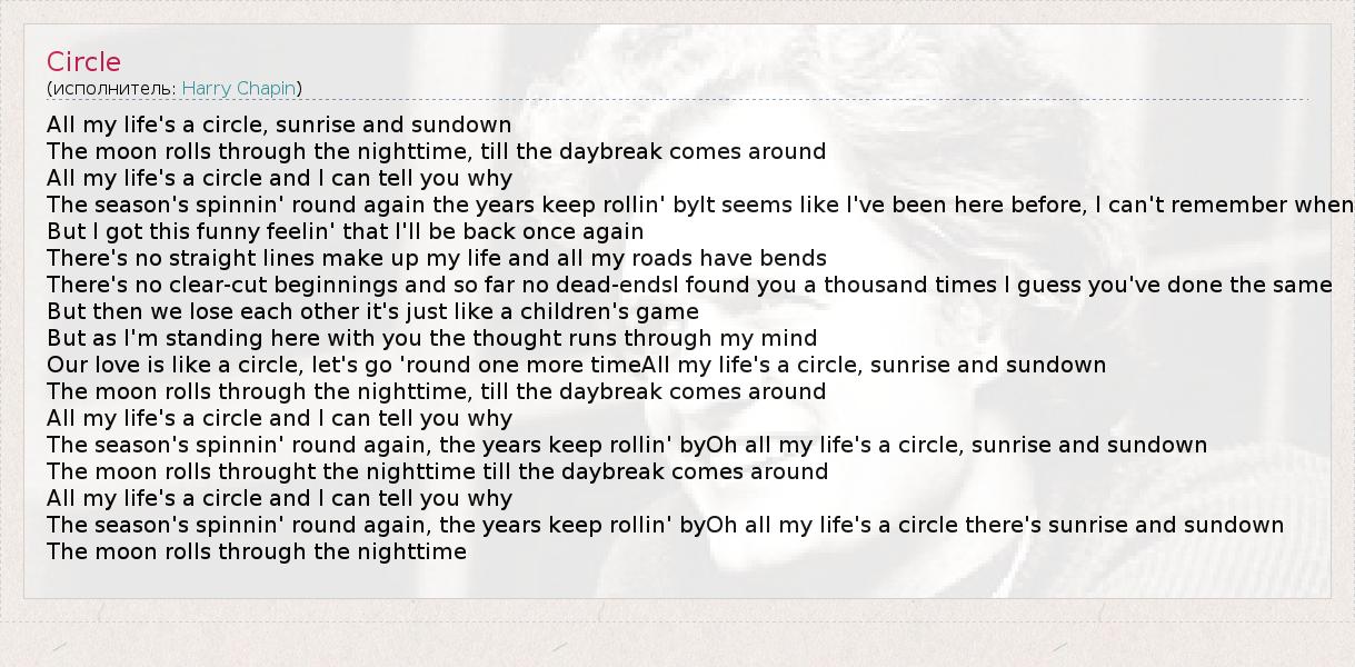 Our love is like a circle, let's go 'round one more timeAll my life's a circle, sunrise and sundown