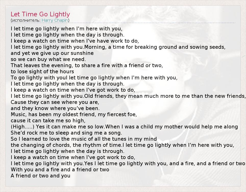 To go lightly with youI let time go lightly when I'm here with you,