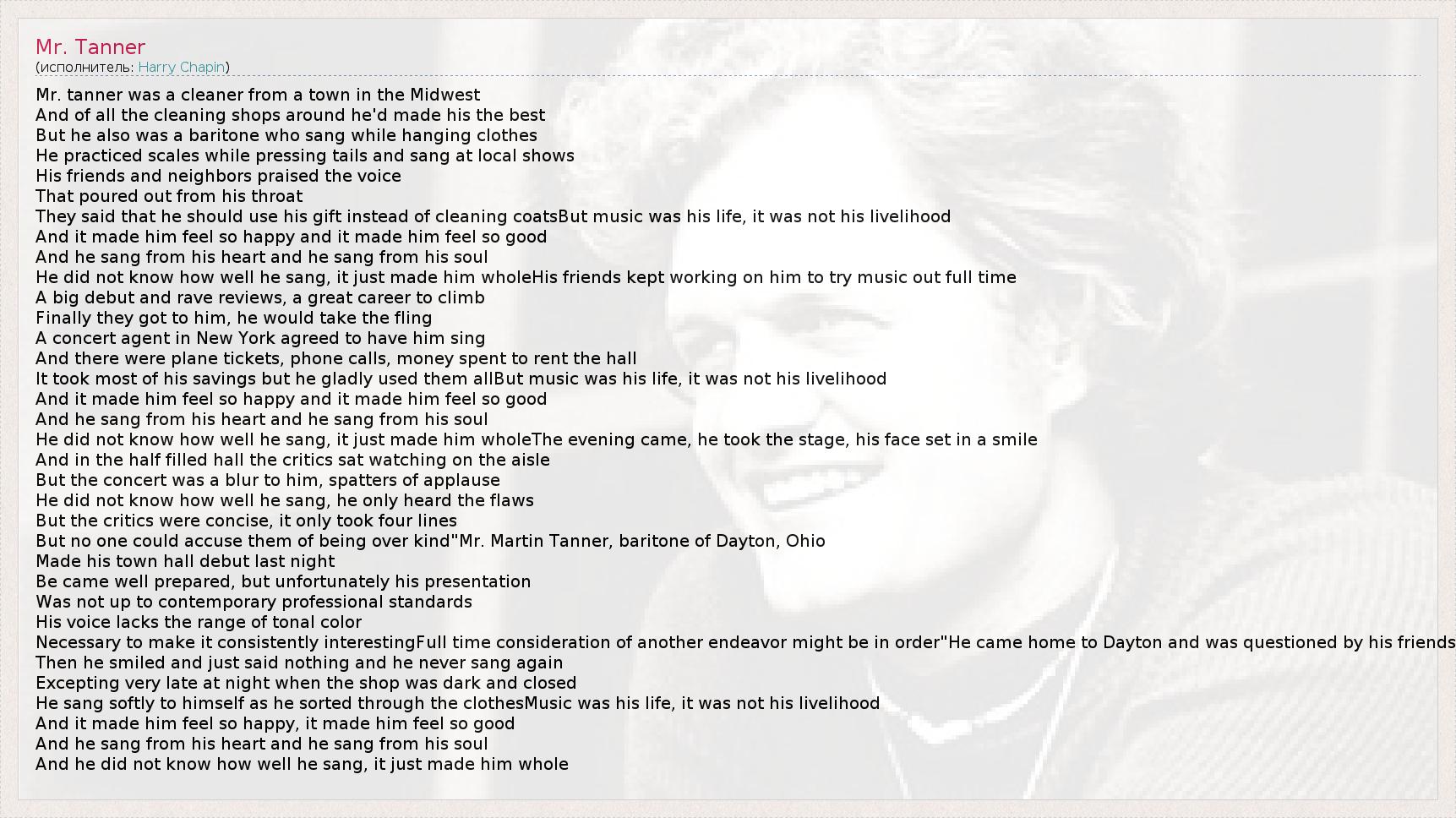 А как ты думаешь, о чем песня "Mr. Tanner" ?