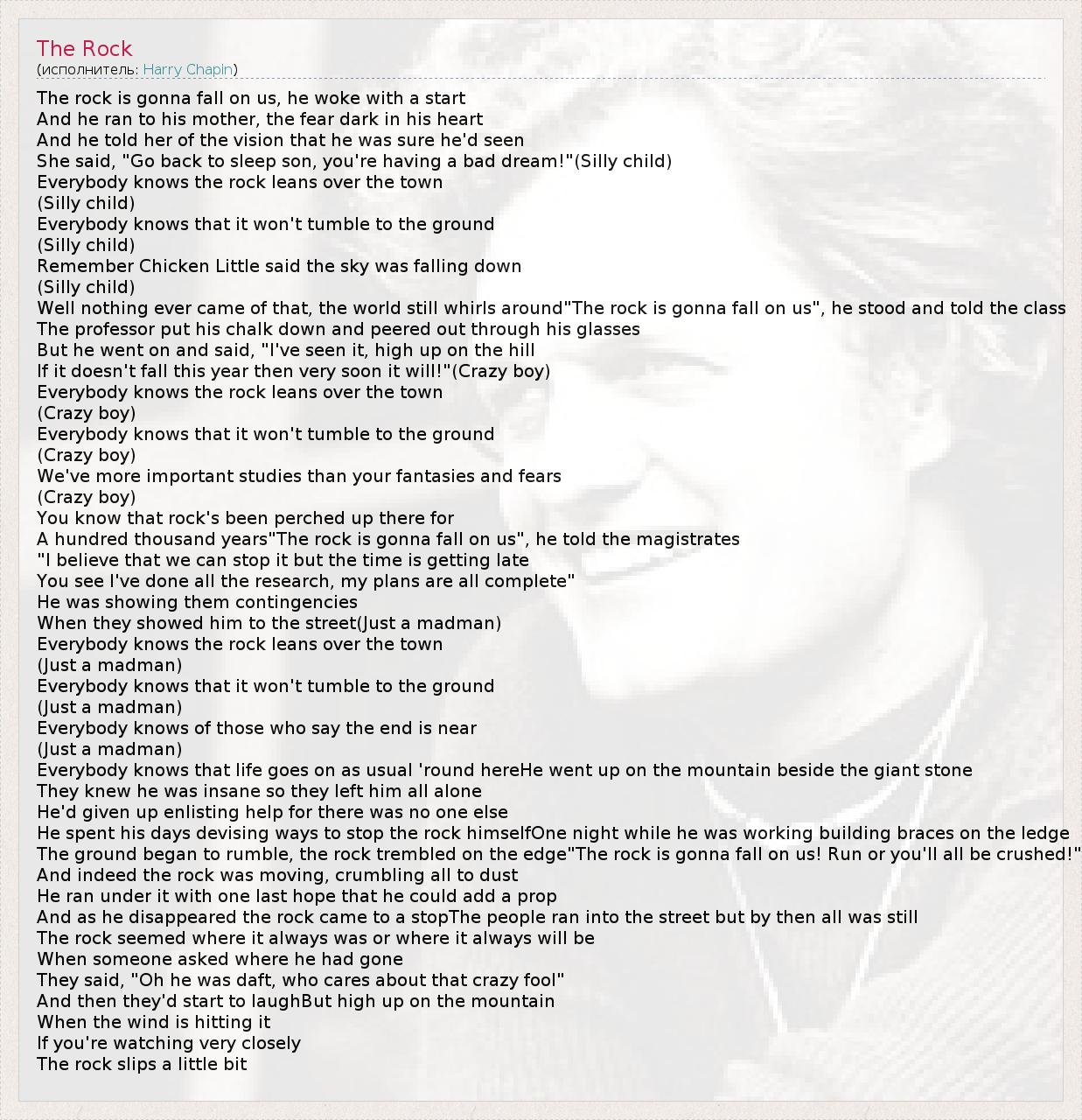 The ground began to rumble, the rock trembled on the edge"The rock is gonna fall on us! Run or you'll all be crushed!"