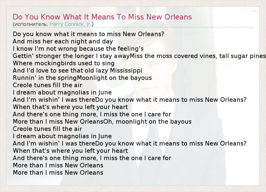 А как ты думаешь, о чем песня "Do You Know What It Means To Miss New Orleans" ?