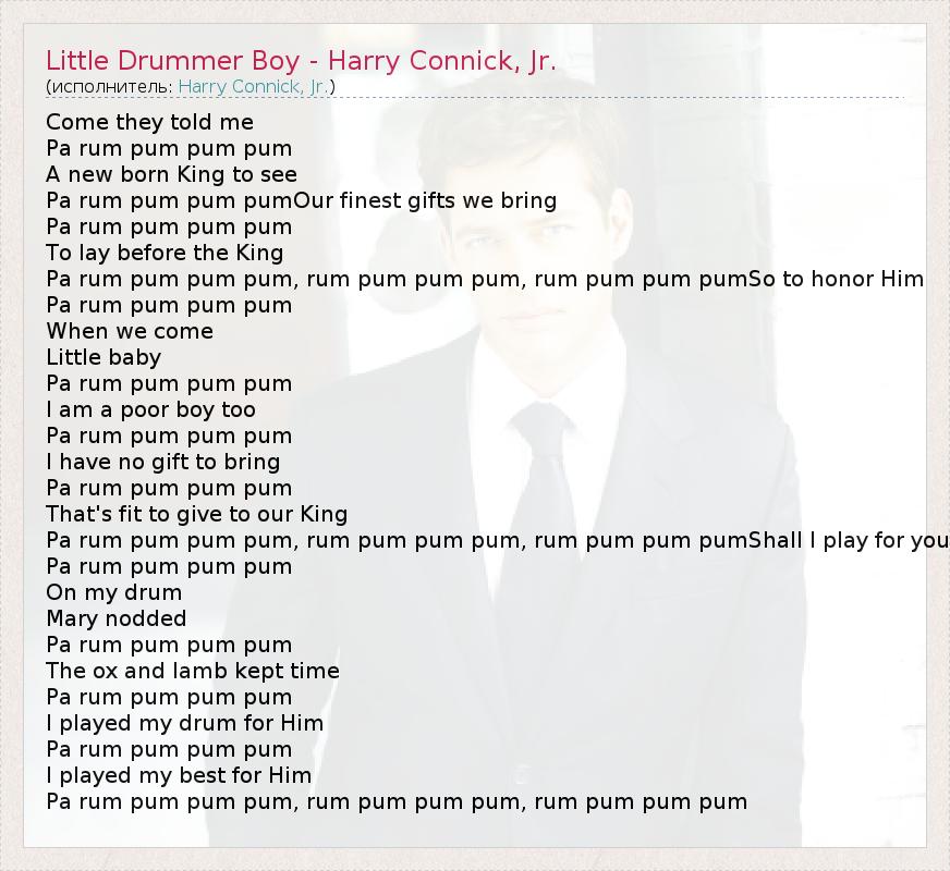 А как ты думаешь, о чем песня "Little Drummer Boy - Harry Connick, Jr." ?