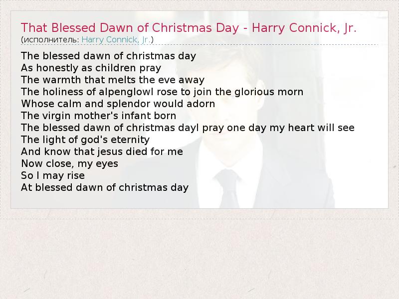 А как ты думаешь, о чем песня "That Blessed Dawn of Christmas Day - Harry Connick, Jr." ?